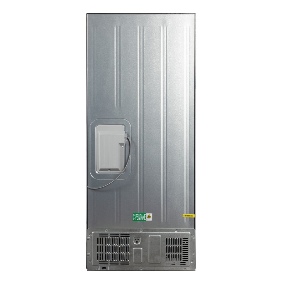 The CHiQ 396L Bottom Mount Refrigerator offers efficient and adaptable cooling for your kitchen. Featuring an inverter system, it operates quietly, keeping your food fresher for longer while minimizing energy consumption. Its Frost Free technology ensures consistent temperatures without the need for manual defrosting, while the Multi Air Flow system evenly circulates cold air across all shelves. The LED display with electronic controls allows for convenient temperature adjustments, including a Fast Freeze mode for quick preservation. Designed with a reversible door, easy-access ice box, and dual crispers with adjustable humidity to keep produce fresh, this fridge also benefits from bottom heat dissipation, allowing it to sit flush with your countertop and adding a sleek, modern touch to your kitchen.