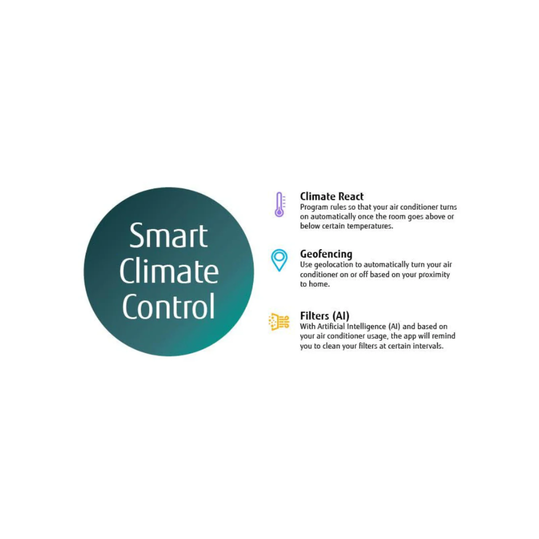 This air conditioner has intelligent sensors that automatically adjust the temperature and airflow to suit your preferences. With built-in Wi-Fi connectivity, you can control it remotely through a mobile app.