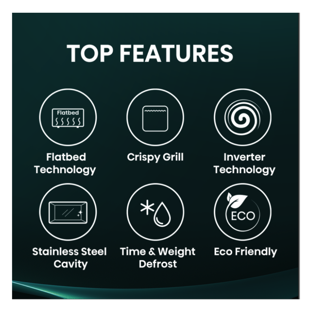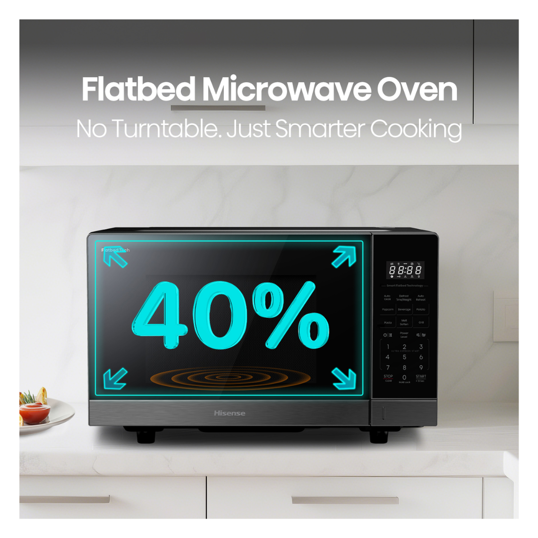 The Hisense HMBS3010PFG 30 litre flatbed microwave delivers powerful and efficient cooking performance for Australian kitchens. Featuring inverter technology, it provides precise and even heating for better cooking, reheating and defrosting results. The flatbed design removes the need for a turntable, offering more usable space for larger dishes and easy cleaning. With a 1000W output and stylish dark stainless steel finish, this microwave combines modern design with practical functionality for everyday use.
