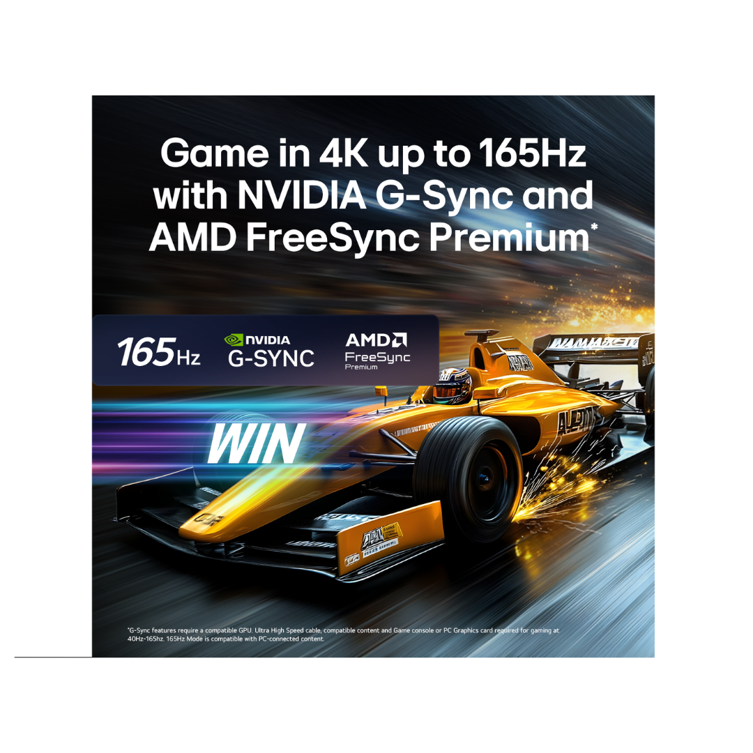 165Hz Refresh Rate with VRR - Ultra-smooth motion ideal for fast-paced gaming, sport and action content.