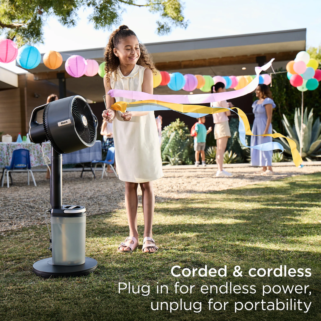 The Shark FA302ANZ FlexBreeze ProMist in Charcoal Grey keeps you cool and comfortable all year round with innovative, flexible performance. Designed for both indoor and outdoor use, this versatile fan delivers powerful airflow and a fine cooling mist with ProMist technology, perfect for warm days, workouts, or alfresco dining.